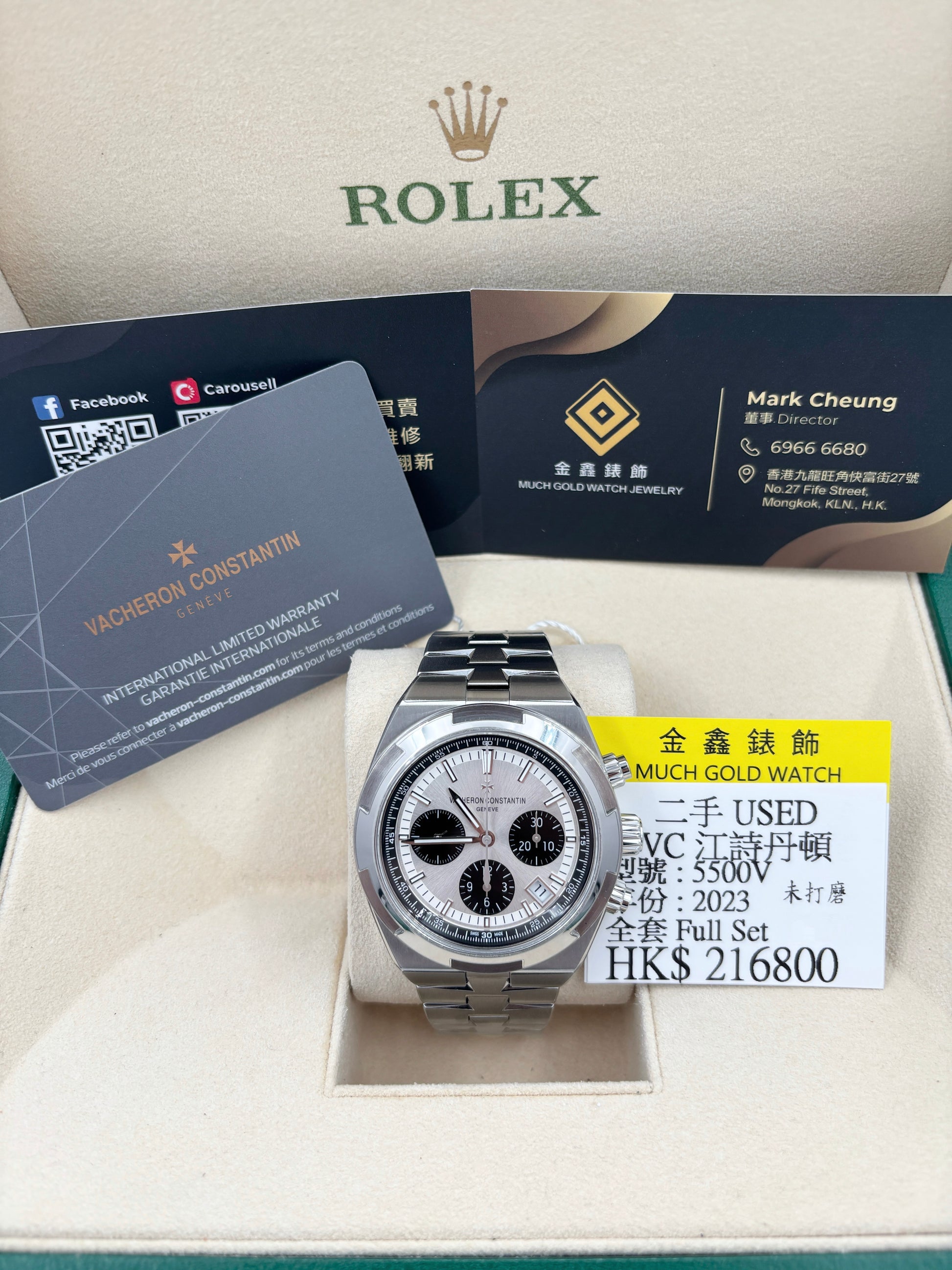 二手 Used VACHERON CONSTANTIN 江斯丹頓 Overseas Chronograph 5500V/110A-B686 白熊貓面 2023年 全套 Full Set