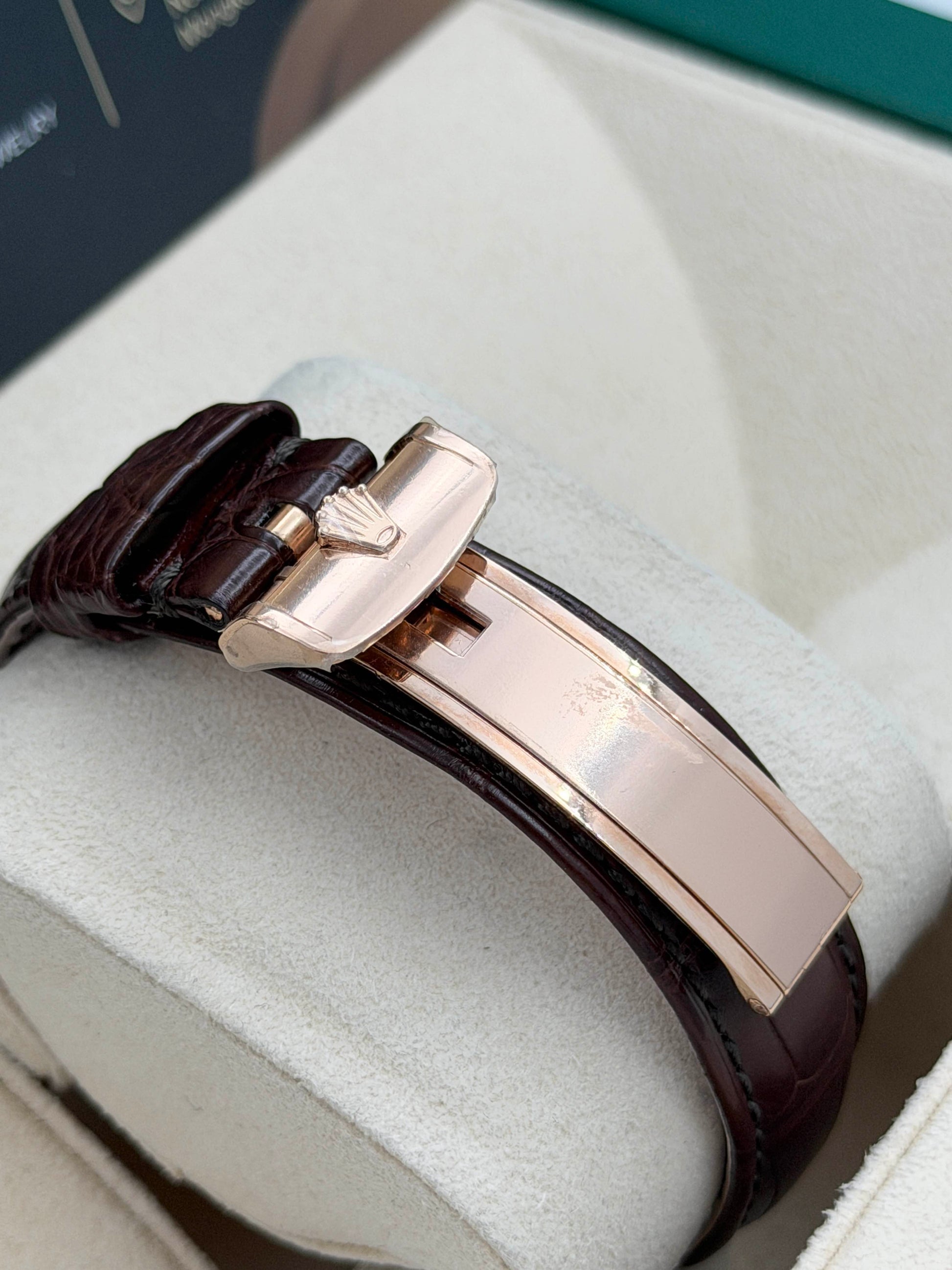 未使用品 Unused ROLEX 勞力士 DAY-DATE 118135 2018年 齊原裝膠紙 朱古力面 AD購買單 玫瑰金 皮帶